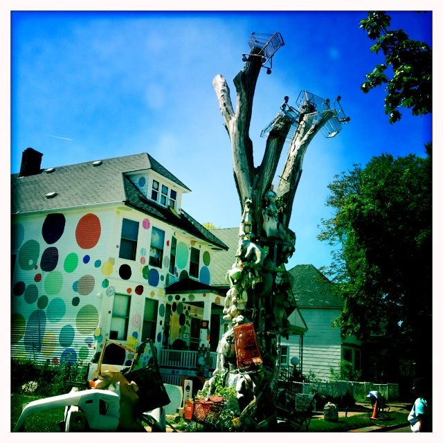 dollheidlebergThe Heidleberg Project. Detroit was literally burning and out of the ashes rose the Heidleberg Project. Artist Tyree Guyton started to fight back with art and created an indescribable polka-dotted neighborhood. Watch this short movie about it – SO FASCINATING! I can’t believe I never went there before. This on my permanent and forever lists of places to visit when I go home.