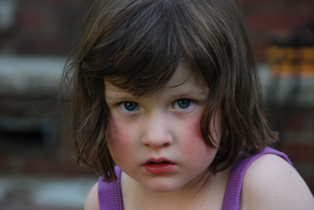 8:30ish – I hear a huge crash in the kitchen and run in to find Devil Baby sprawled on her back, covered in fish food, mouth agape working up to the big waaaaaaah. Pingo’s tub is practically opaque from all the food in there and he’s going nuts trying to eat it all. I have to work fast. I quickly dechlorinate some water in the green bowl I use to make crepes, scoop him into it, clean out his bowl, fill it with water, dechlorinate it and run to check on Devil Baby, who is still wailing her head off. (I know, I should have checked on her first, right? This fish thing has made me a bit crazy.)