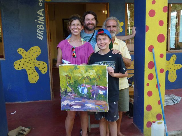 Dash and I have a long tradition of rationalizing purchases in Costa Rica – beginning on our honeymoon when we would let ourselves splurge on cool and fancy hotels we stumbled upon because Hey! You only honeymoon once, right? This time, we bought a painting by artist Joseph Kaknes. He dedicated it to us on the back, scribbling that he hoped it would bring us much joy. It already has. I love this painting because I love the whole day leading up to it and how we found it and the salty Gloucester artist who charmed us in his studio. I love that my kids ran around and played with his dogs while we chatted with Joseph, slowly becoming enchanted by his work. It’s for our fifteenth wedding anniversary. And Christmas.